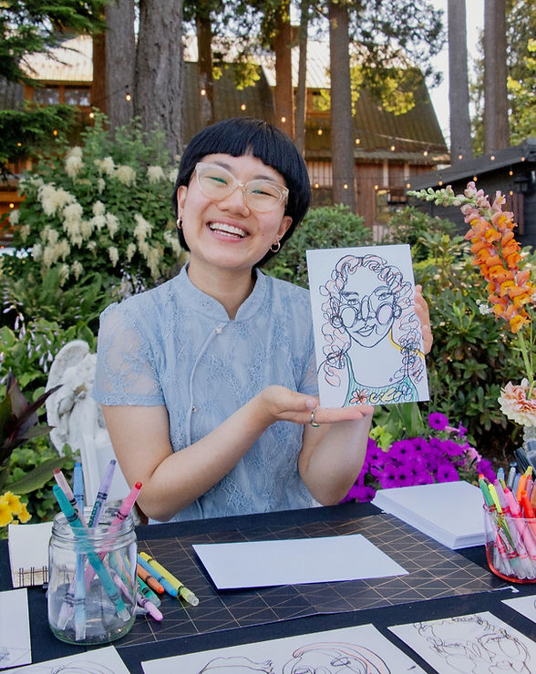 ​Vicky Wang is a live portrait artist and painter. Her work is defined by a signature style of flowing lines and joyful colour — a reflection of her zest for life, bright spirit, and deep love of human connection. Her continuous-line technique is a deliberate choice, one that leaves no room for doubt or hesitation.